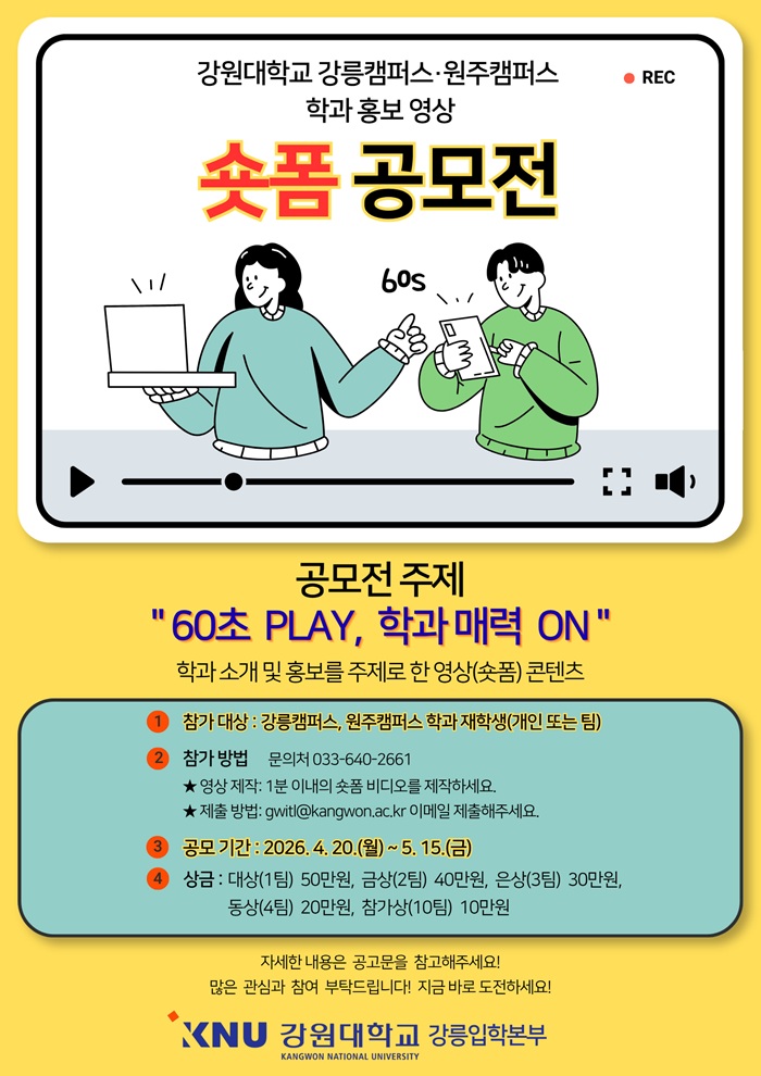 2026학년도 강릉·원주캠퍼스 학과 홍보 영상(숏폼) 공모전 안내