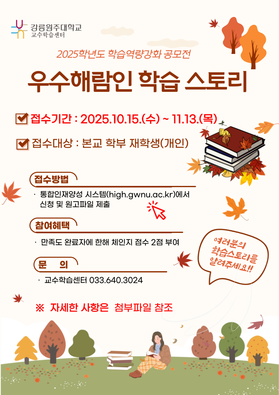 [교수학습센터] 2025학년도 학습역량강화 공모전(우수해람인학습스토리) 공모 알림