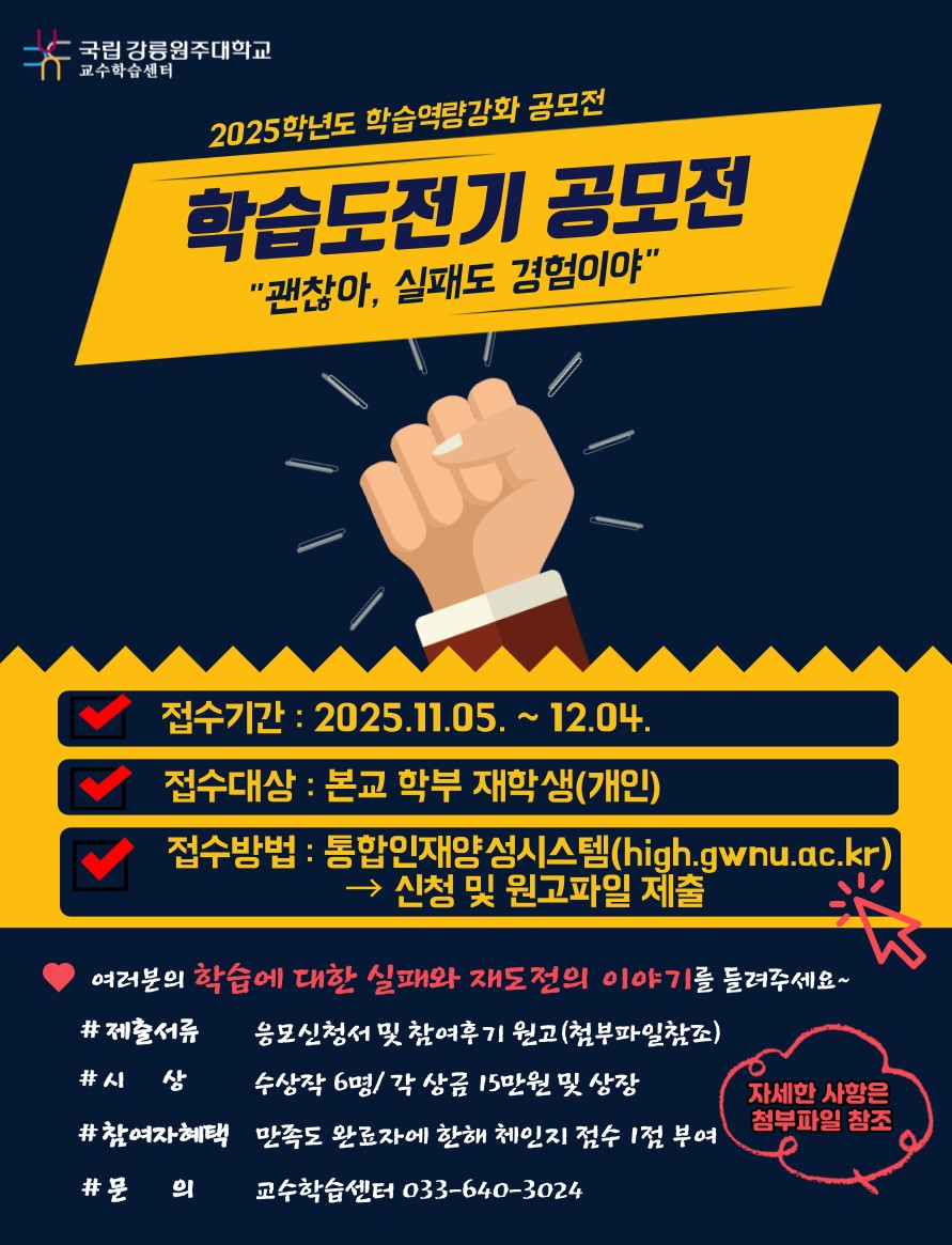 [교수학습센터] 2025학년도 학습역량강화 공모전(학습도전기) 공모 알림