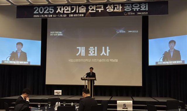 국립강릉원주대학교(총장 박덕영) 자연기술센터(센터장 박남일)와 강원대학교(총장 정재연) KNU창업혁신원(원장 최용석)은 1월 15일(목)부터 1.16.(금)까지 이틀간 강릉 씨마크호텔에서 「2025 자연기술 연구 성과 공유회」를 공동 개최했다.