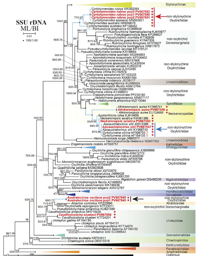 -Omar, A., Moon, J.H., Jung, J.-H., 2025. Re-evaluation of the systematic positions of oxytrichid ciliates (Alveolata: Ciliophora: Hypotrichia) with multiple dorsal kinety fragmentation using morphological, morphogenetic, and multi-gene phylogenetic approaches. Zool. J. Linn. Soc. 205, zlaf151.