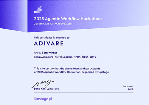 이번 대회는 AI Agent 기반 워크플로우를 주제로 문서 요약부터 업무 자동화, 데이터 분석등 실무에 적용 가능한 아이디어를 구현하는 해커톤으로 진행됐다. 우리 대학 참가팀은 전공 간 협업을 바탕으로 실용적인 AI 솔루션을 제안해 높은 평가를 받았다.